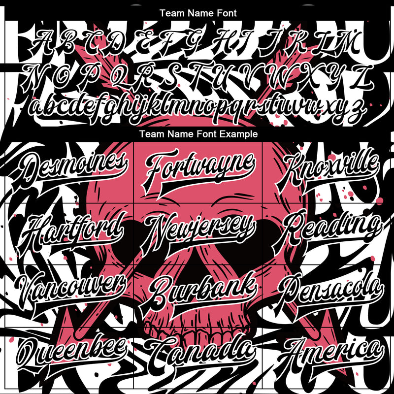 Custom Black White Pink Skull With Heart Shaped Eyes 3D Bomber Full-Snap Varsity Letterman Jacket