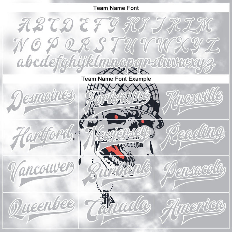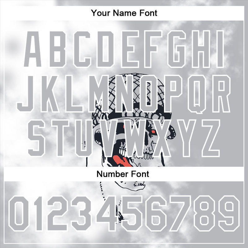 Custom Gray White Skull Fashion 3D Bomber Full-Snap Varsity Letterman Jacket