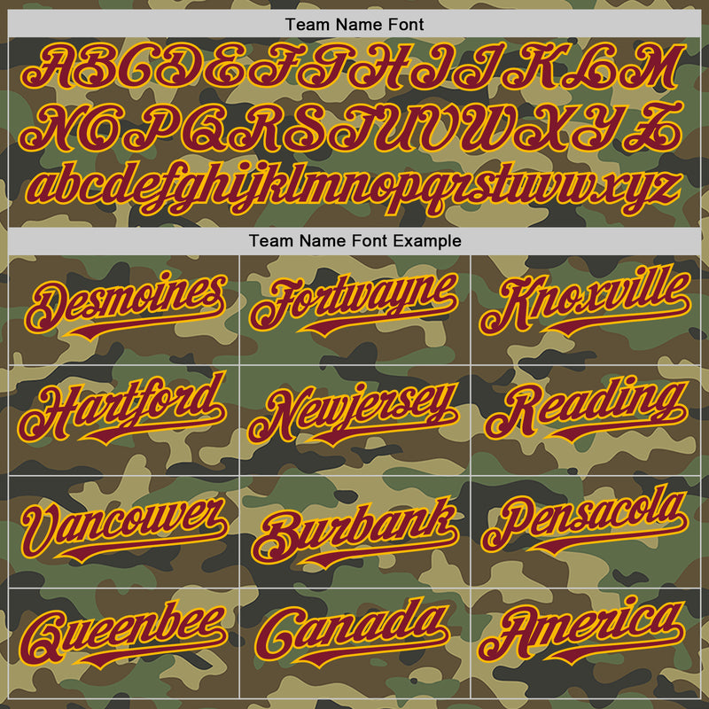 Custom Camo Crimson-Gold Bomber Full-Snap Varsity Letterman Salute To Service Hoodie Jacket