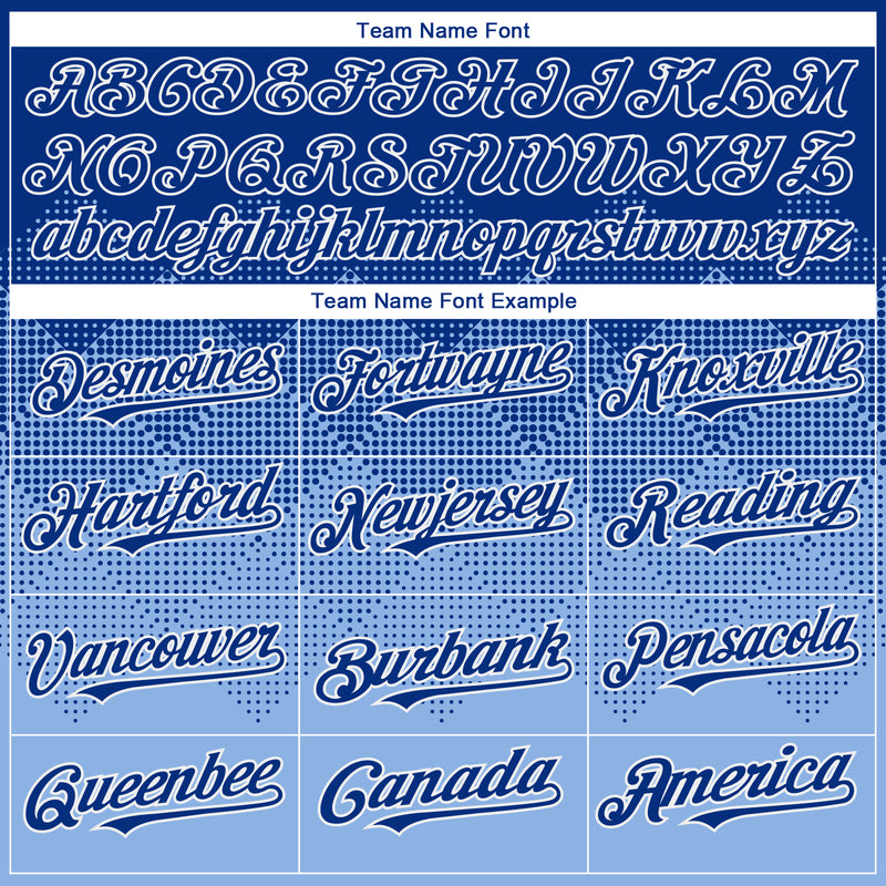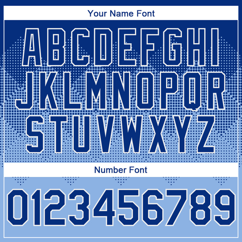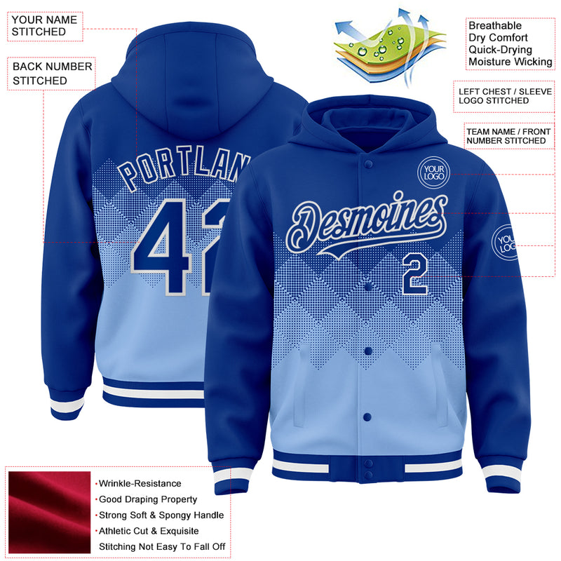Custom Royal Light Blue-White Gradient Square Shape 3D Pattern Design Bomber Full-Snap Varsity Letterman Hoodie Jacket