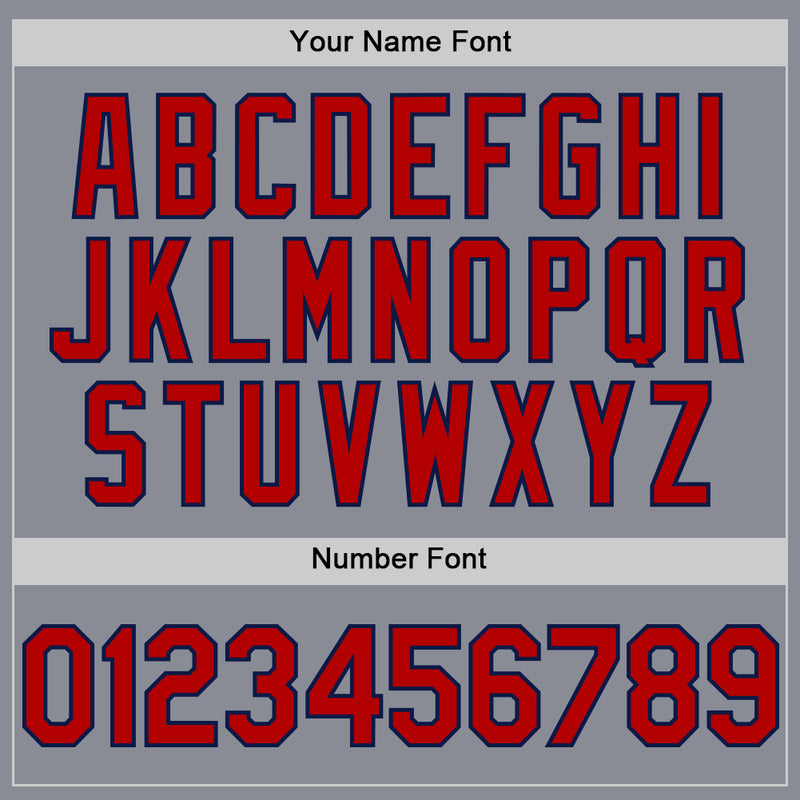 Custom Gray Red-Navy Bomber Full-Snap Varsity Letterman Hoodie Jacket