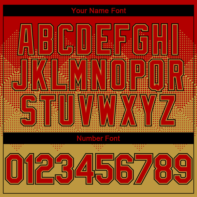 Custom Red Old Gold-Black Gradient Square Shape 3D Pattern Design Bomber Full-Snap Varsity Letterman Hoodie Jacket