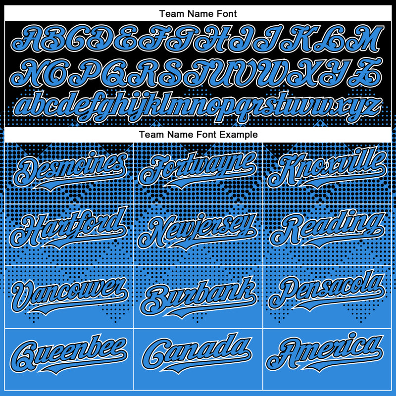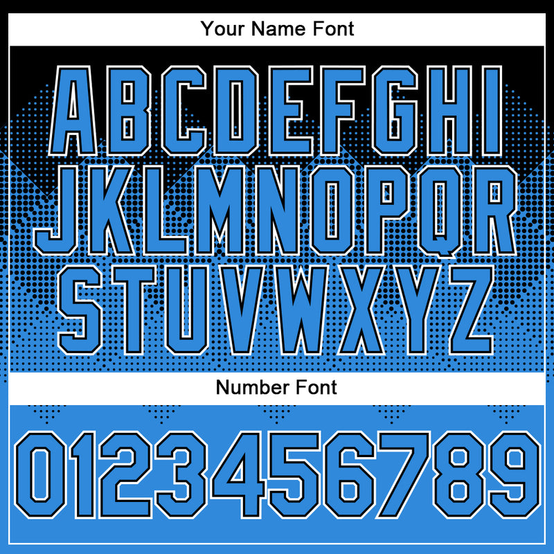 Custom Black Powder Blue-White Gradient Square Shape 3D Pattern Design Bomber Full-Snap Varsity Letterman Hoodie Jacket