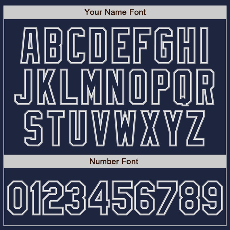 Custom Navy White-Gray Bomber Full-Snap Varsity Letterman Jacket