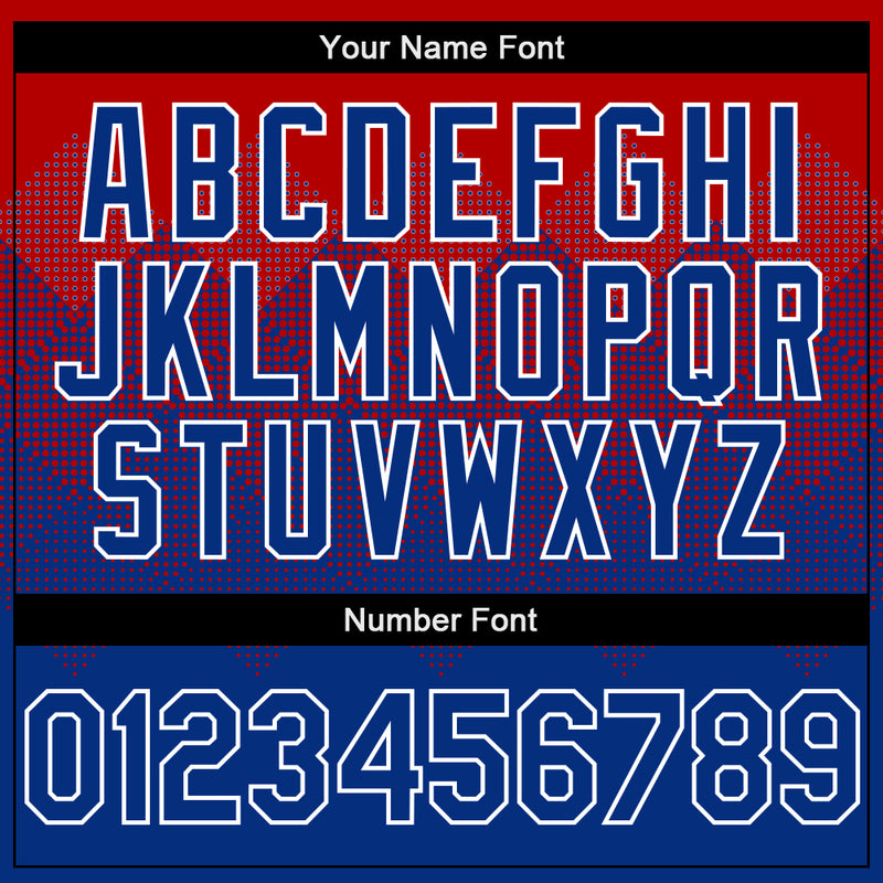 Custom Red Royal-White Gradient Square Shape 3D Pattern Design Bomber Full-Snap Varsity Letterman Hoodie Jacket