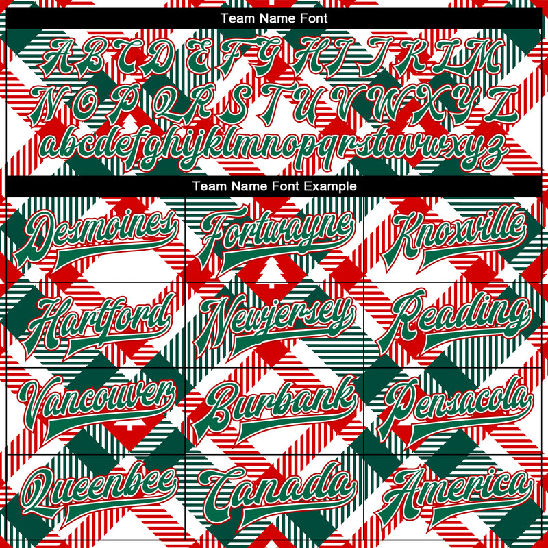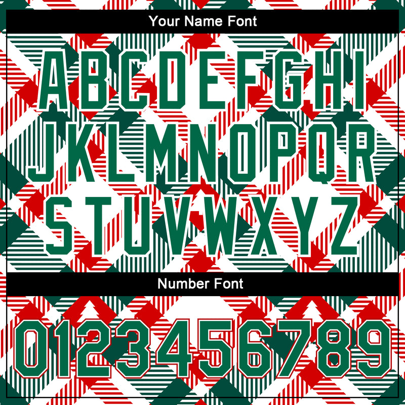 Custom Red Kelly Green-White 3D Christmas Plaid Hockey Lace Neck Jersey