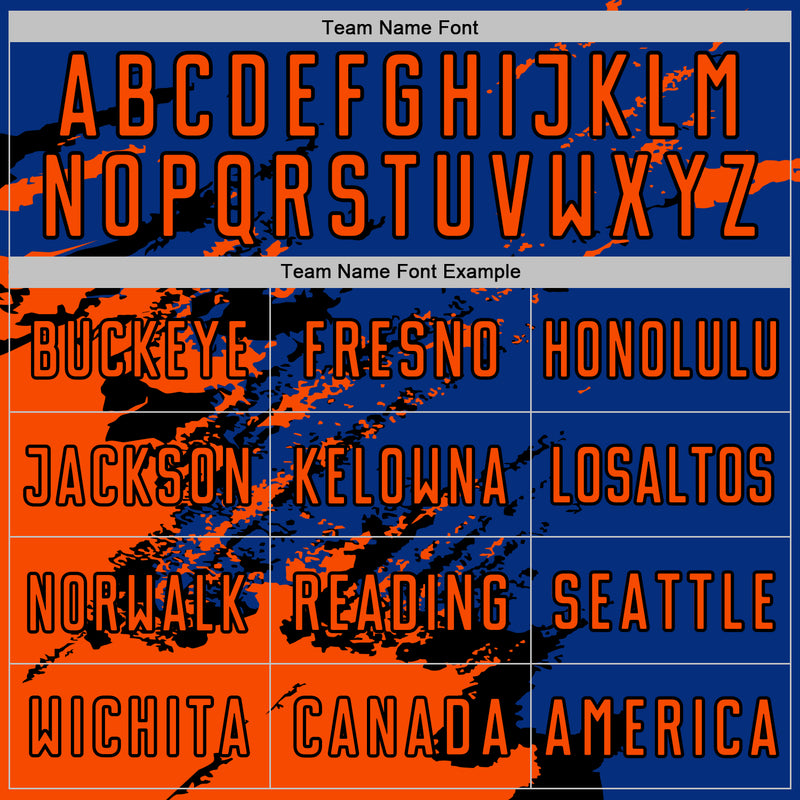 Custom Royal Orange-Black Abstract Fragment Art Splash Sports Sublimation Soccer Uniform Jersey