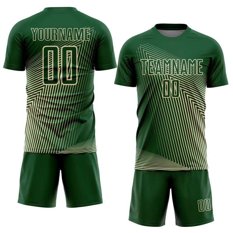 Custom Green Cream Lines Sublimation Soccer Uniform Jersey