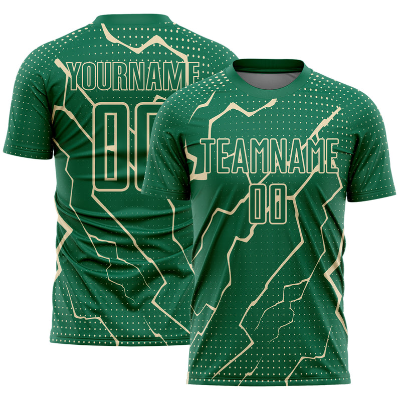 Custom Kelly Green Cream Lightning Sports Sublimation Soccer Uniform Jersey