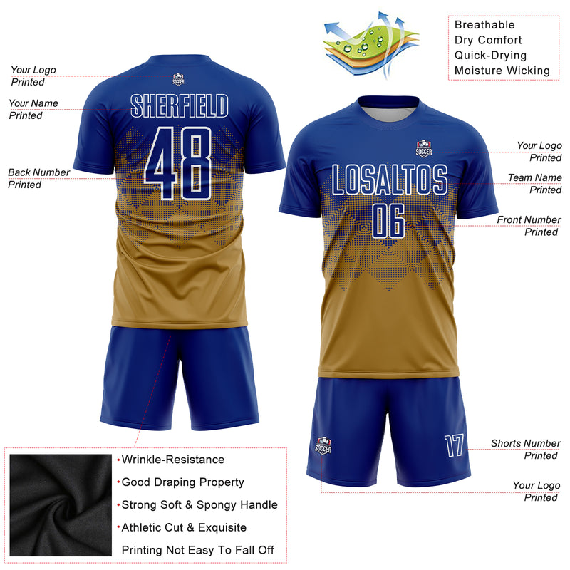 Custom Old Gold Royal-White Sublimation Soccer Uniform Jersey