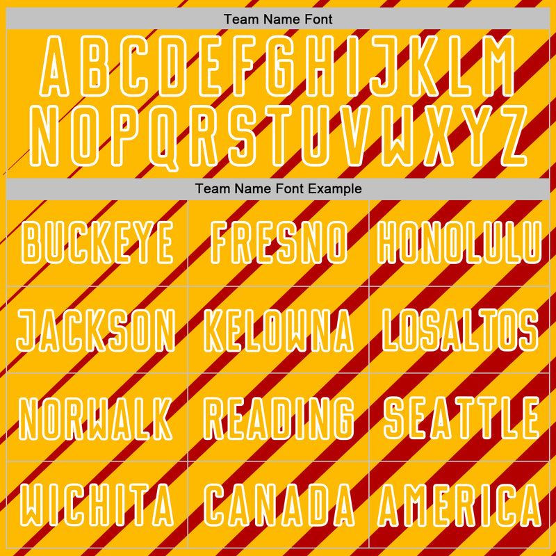 Custom Red Gold-White Lines Sublimation Soccer Uniform Jersey