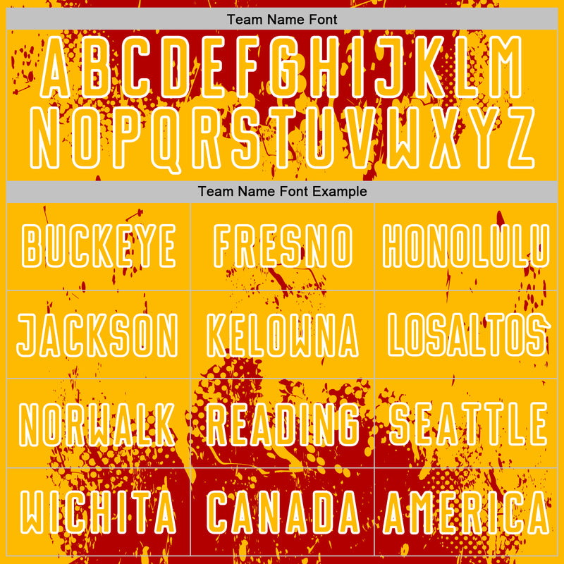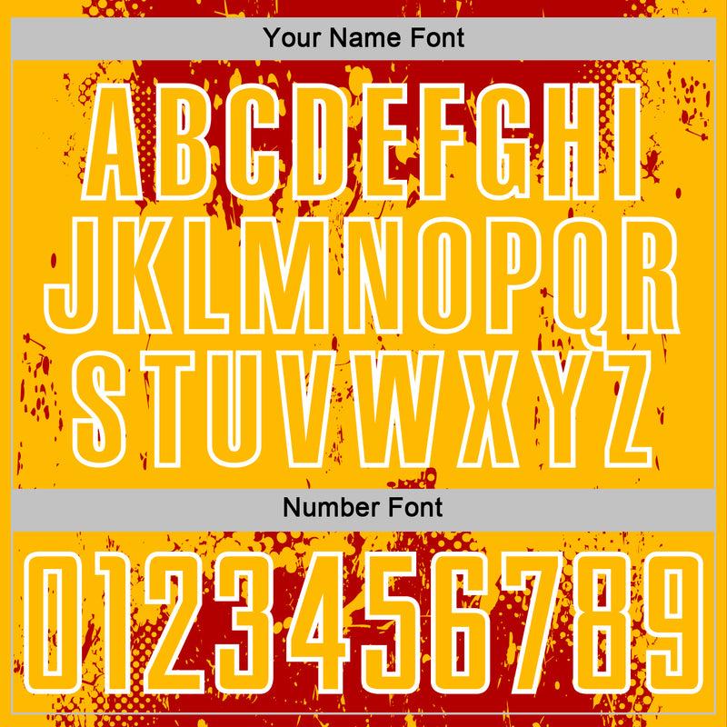 Custom Red Gold-White Abstract Splatter Grunge Art Sports Sublimation Soccer Uniform Jersey