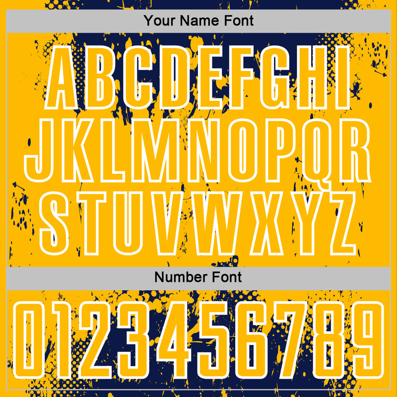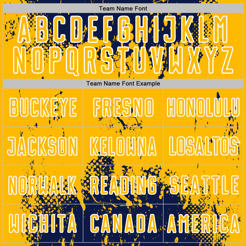 Custom Navy Gold-White Abstract Splatter Grunge Art Sports Sublimation Soccer Uniform Jersey