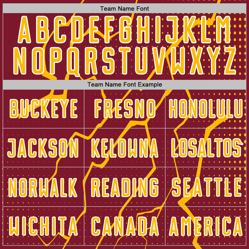 Custom Crimson Gold-White Lightning Sports Sublimation Soccer Uniform Jersey