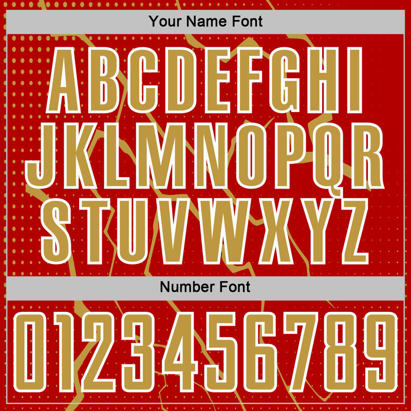 Custom Red Old Gold-White Lightning Sports Sublimation Soccer Uniform Jersey