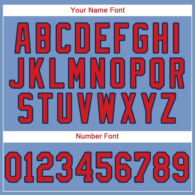 Custom Light Blue Red-Navy Split Ripped Pattern Baseball Pullover Sweatshirt Hoodie