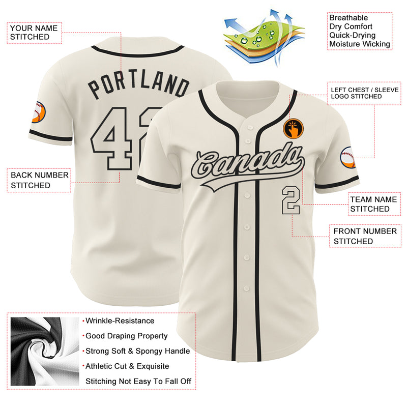 Custom Cream Cream-Black Authentic Baseball Jersey