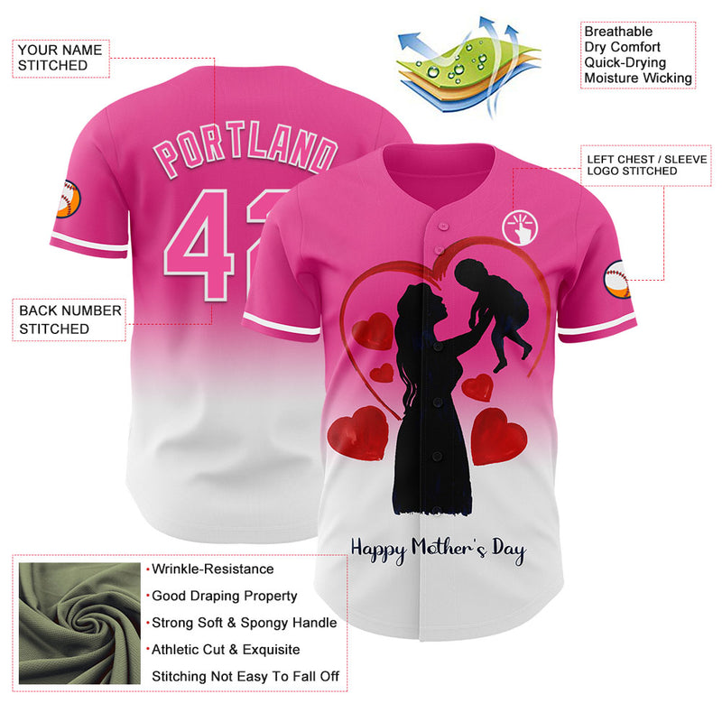 Custom Pink White 3D Pattern Design Gradient Mother's Day Family Love Authentic Baseball Jersey