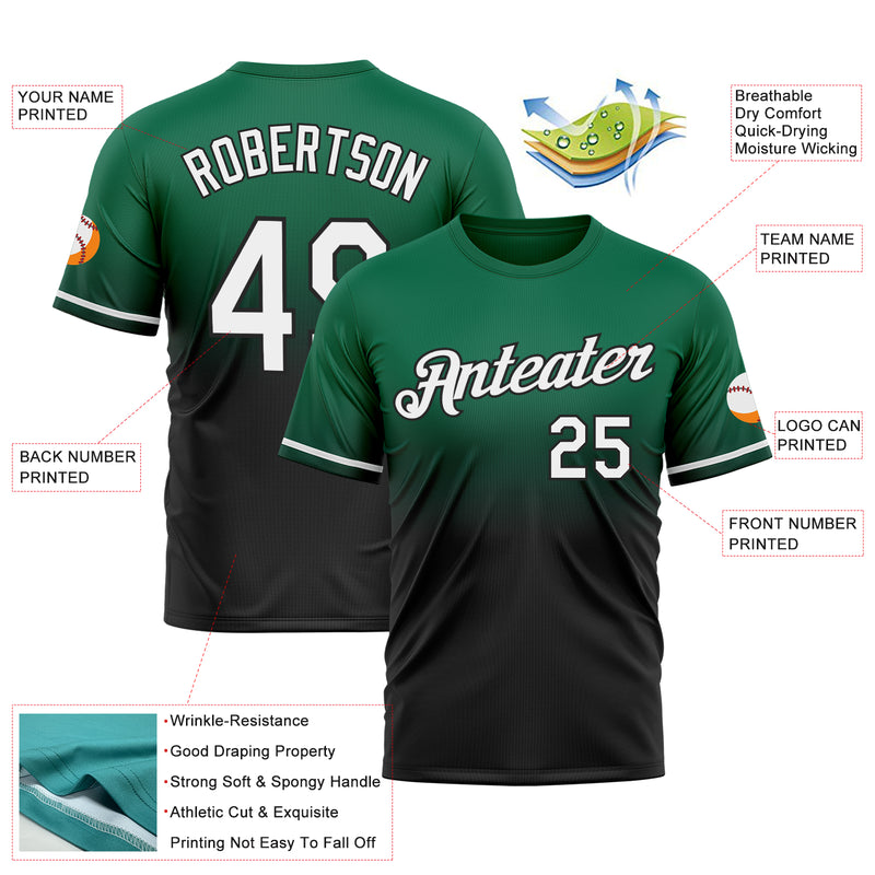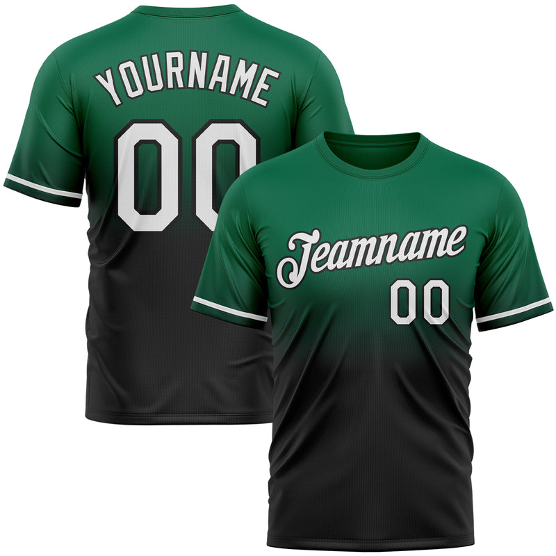 Custom Kelly Green White-Black Fade Fashion Performance T-Shirt