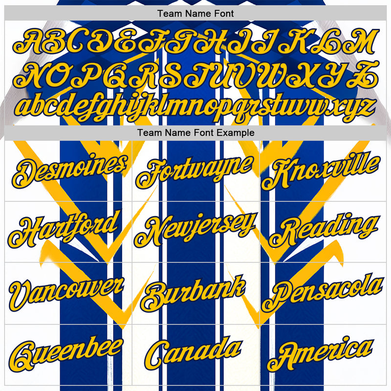 Custom White Yellow Blue-Navy 3D Pattern Design Geometric Shape Stripe Sportswear Performance T-Shirt