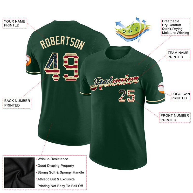 Custom Green Vintage USA Flag-City Cream Performance T-Shirt