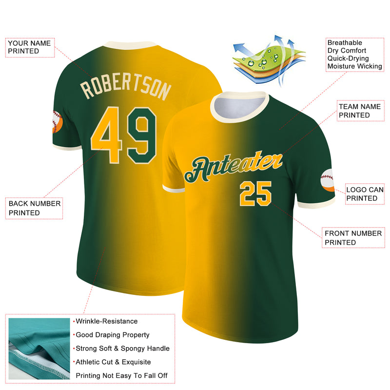Custom Green Gold-Cream Gradient Fashion Performance T-Shirt