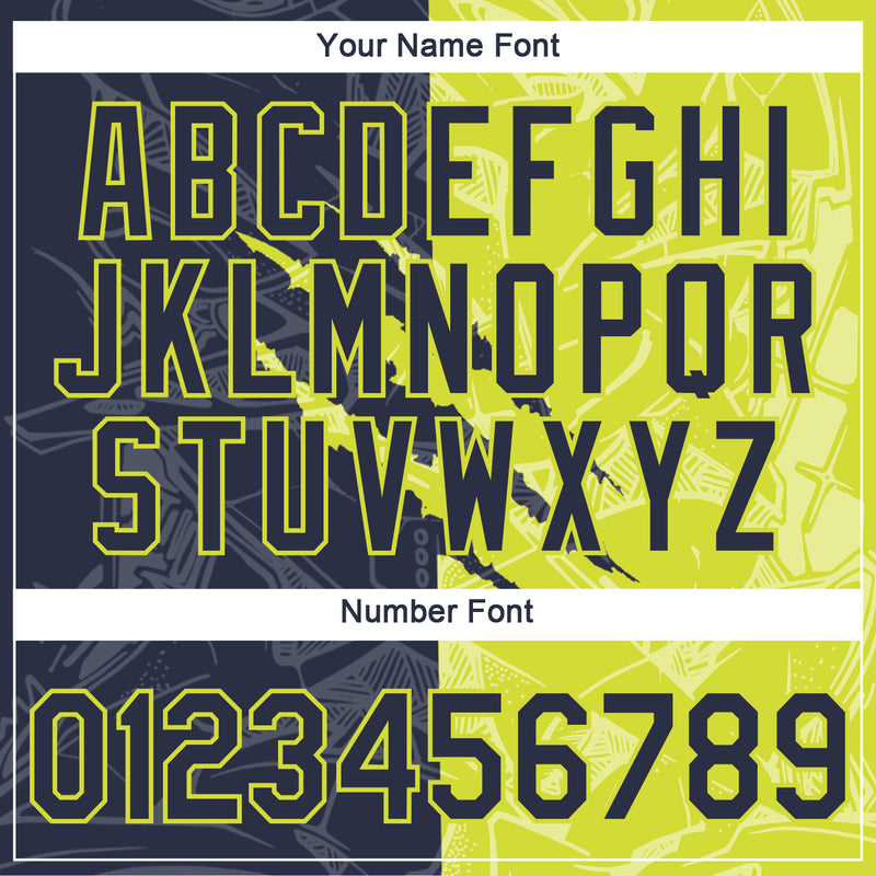 Custom Graffiti Pattern Navy-Neon Yellow Scratch 3D Performance T-Shirt
