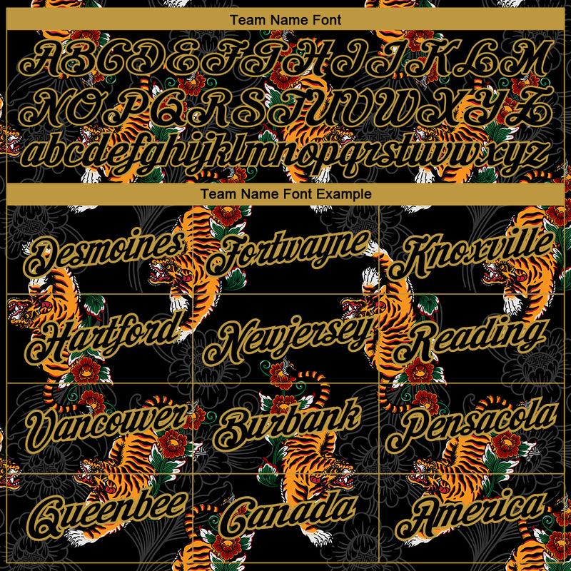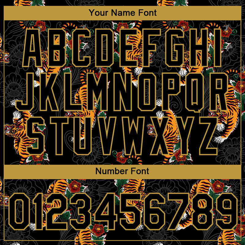 Custom Black Old Gold 3D Pattern Design Tiger Performance T-Shirt