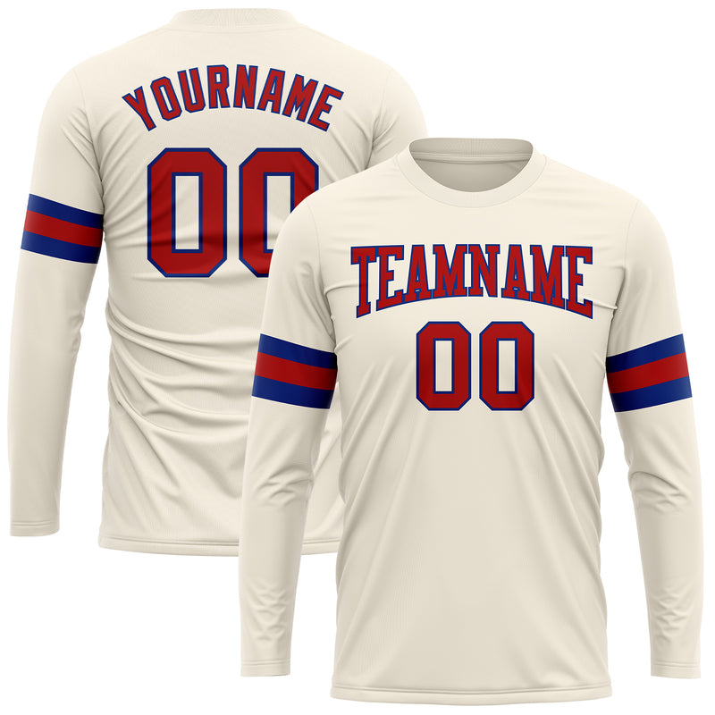 Custom Cream Red-Royal Long Sleeve Performance T-Shirt