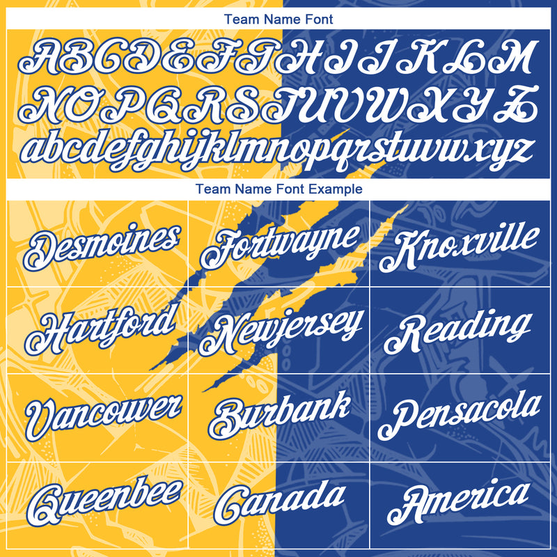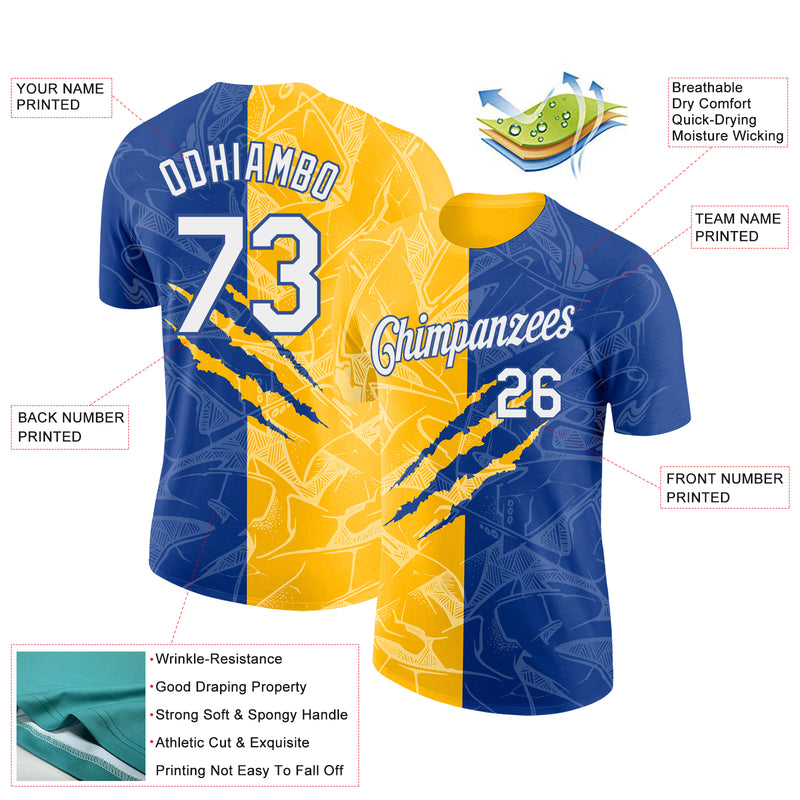 Custom Graffiti Pattern White Royal-Gold Scratch 3D Performance T-Shirt