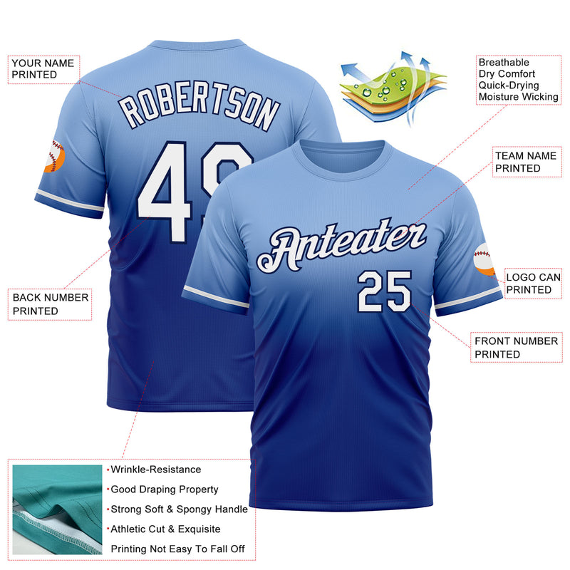 Custom Light Blue Royal-Navy Fade Fashion Performance T-Shirt
