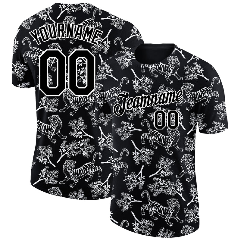 Custom Black White 3D Pattern Design Tiger Performance T-Shirt