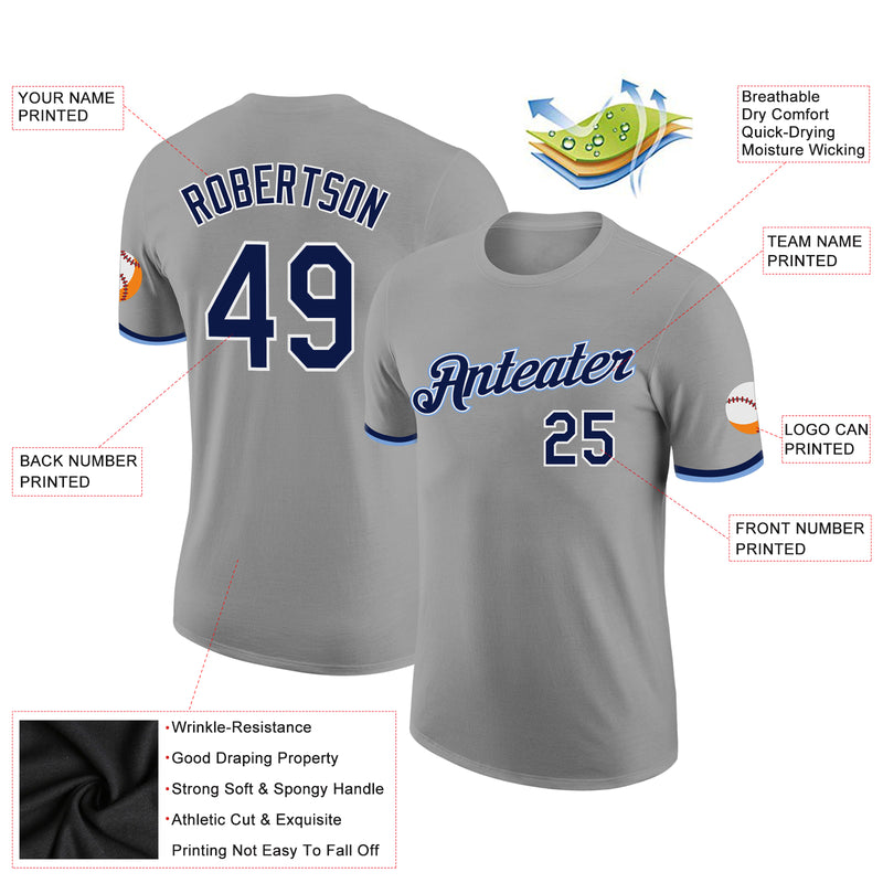 Custom Gray Navy-White Performance T-Shirt