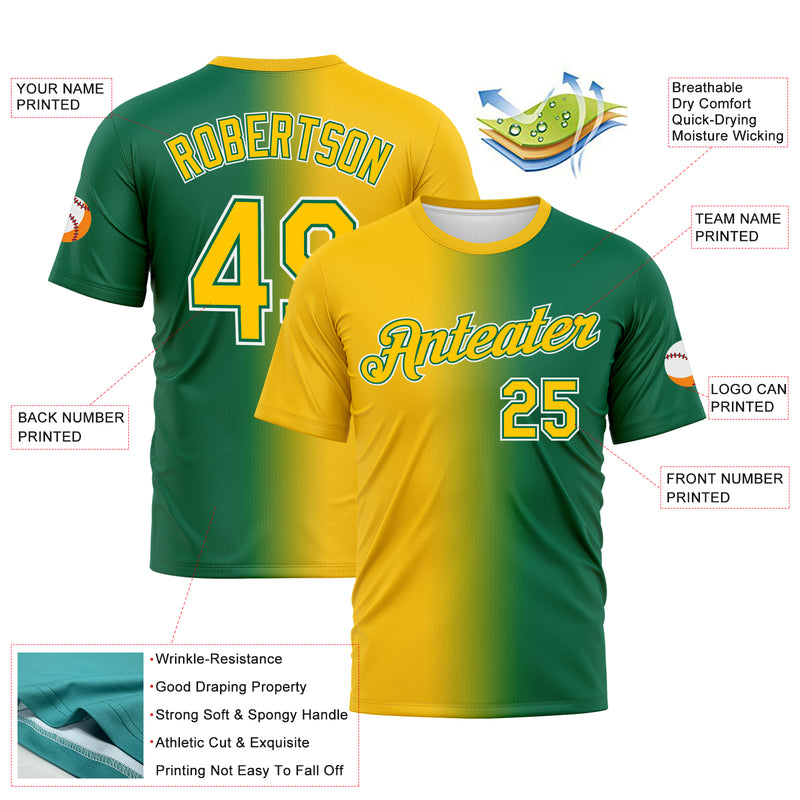 Custom Kelly Green Yellow-White Gradient Fashion Performance T-Shirt