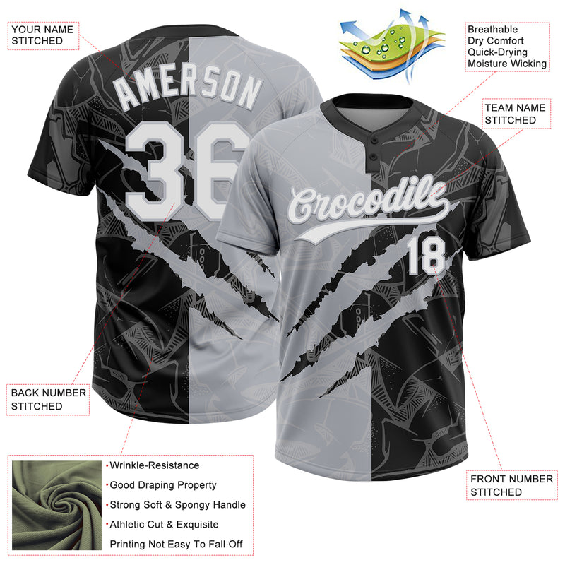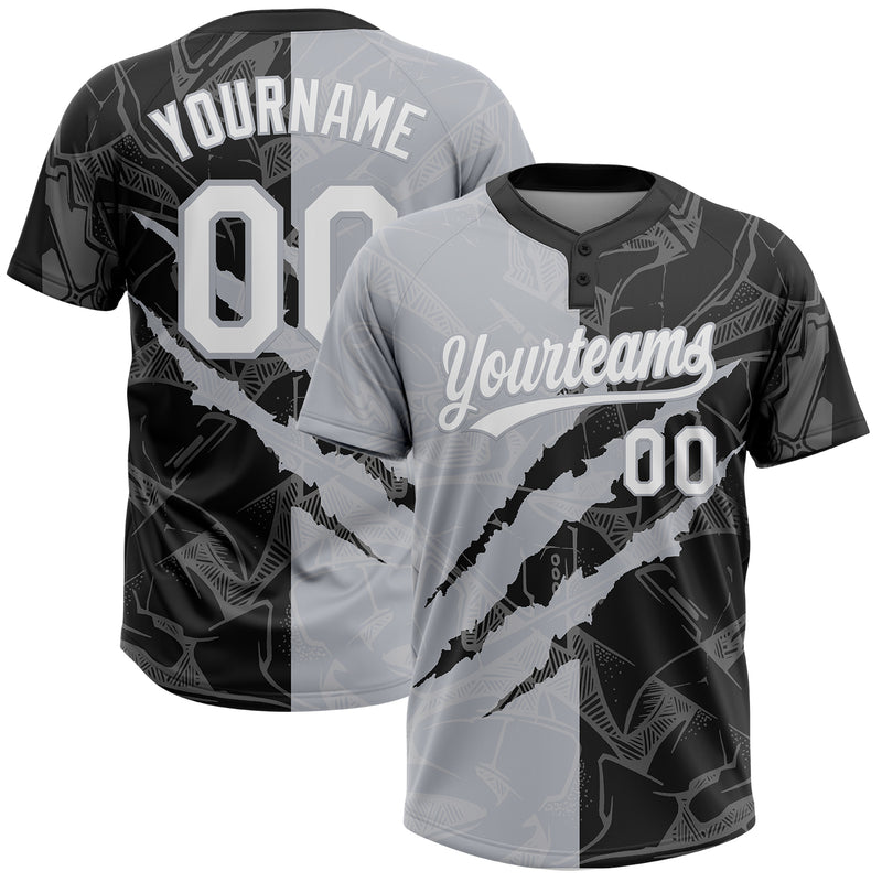 Custom Graffiti Pattern White Black-Gray 3D Scratch Two-Button Unisex Softball Jersey