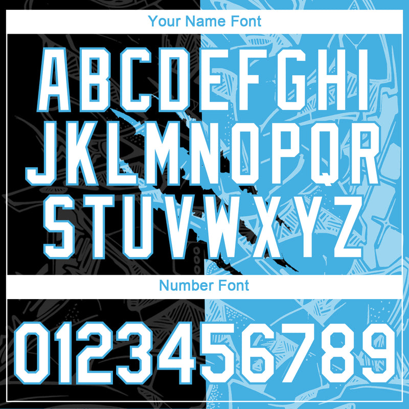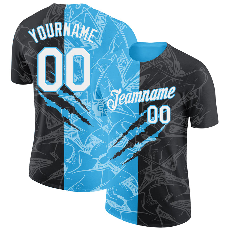 Custom Graffiti Pattern White Black-Sky Blue Scratch 3D Performance T-Shirt
