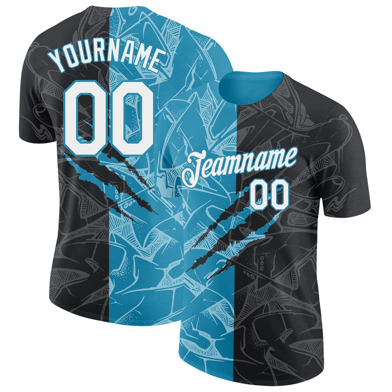 Custom Graffiti Pattern White Black-Panther Blue Scratch 3D Performance T-Shirt