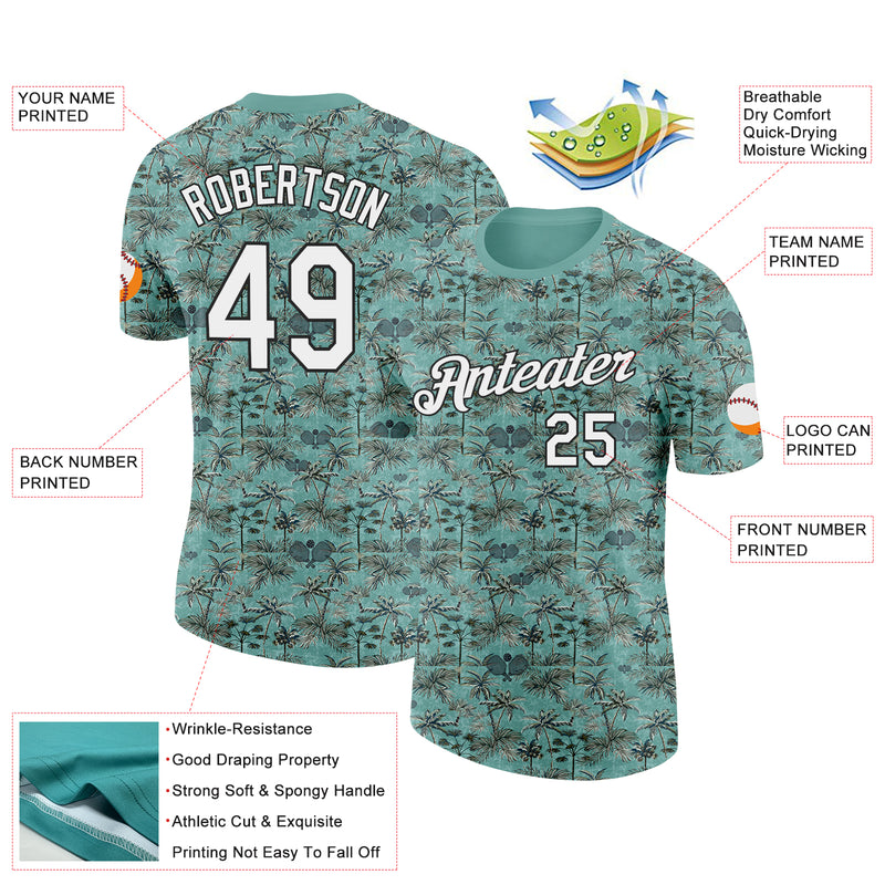 Custom Green White-Black 3D Pickleball Paddles Balls Tropical Palm Trees Performance T-Shirt
