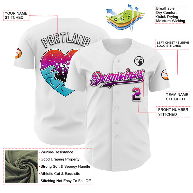 Custom White Gradient-Black Valentine's Day Love Heart Authentic Baseball Jersey