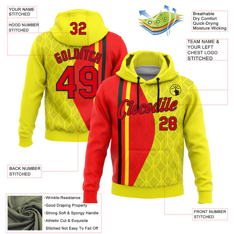 Custom Stitched Yellow Fire Red-Black 3D Pattern Design Germany Inspired Geometric Shape Sportswear Pullover Sweatshirt Hoodie