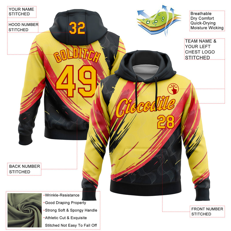 Custom Stitched Yellow Black-Red 3D Pattern Design Germany Inspired Abstract Line Sportswear Pullover Sweatshirt Hoodie