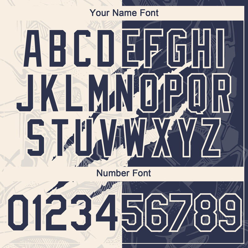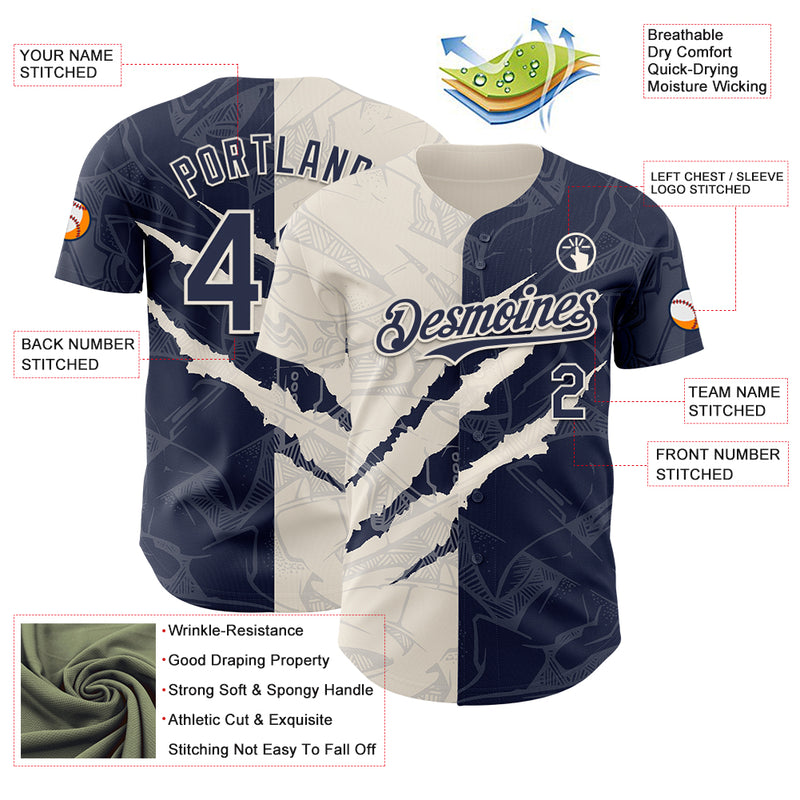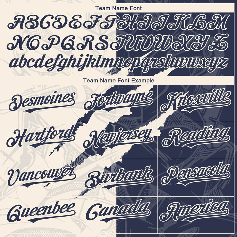 Custom Graffiti Pattern Navy-Cream 3D Scratch Authentic Baseball Jersey