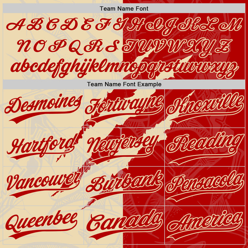 Custom Graffiti Pattern Red-Cream 3D Scratch Two-Button Unisex Softball Jersey