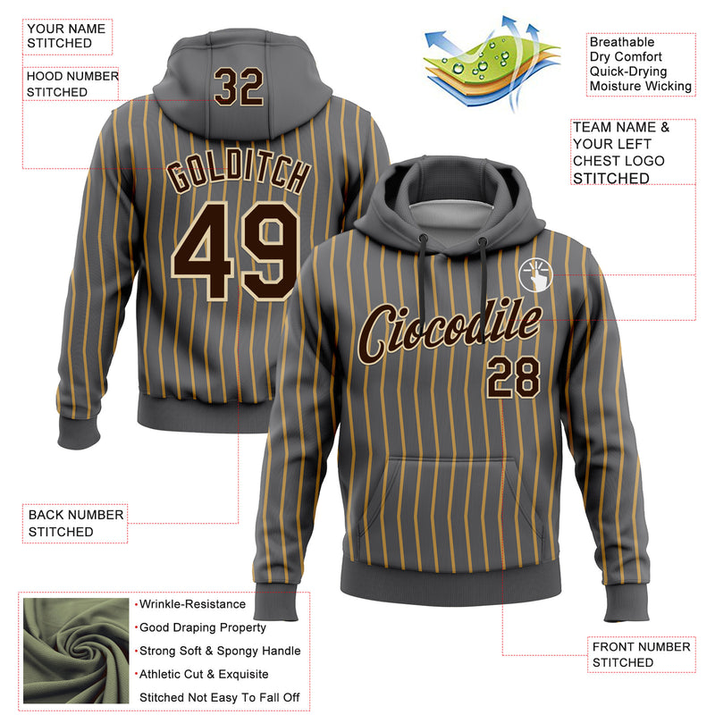 Custom Stitched Steel Gray Old Gold Pinstripe Brown-Cream 3D Pattern Design Line Sports Pullover Sweatshirt Hoodie