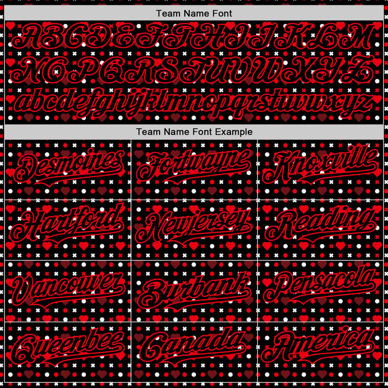 Custom Black Fire Red Valentine's Day Love Heart Authentic Baseball Jersey