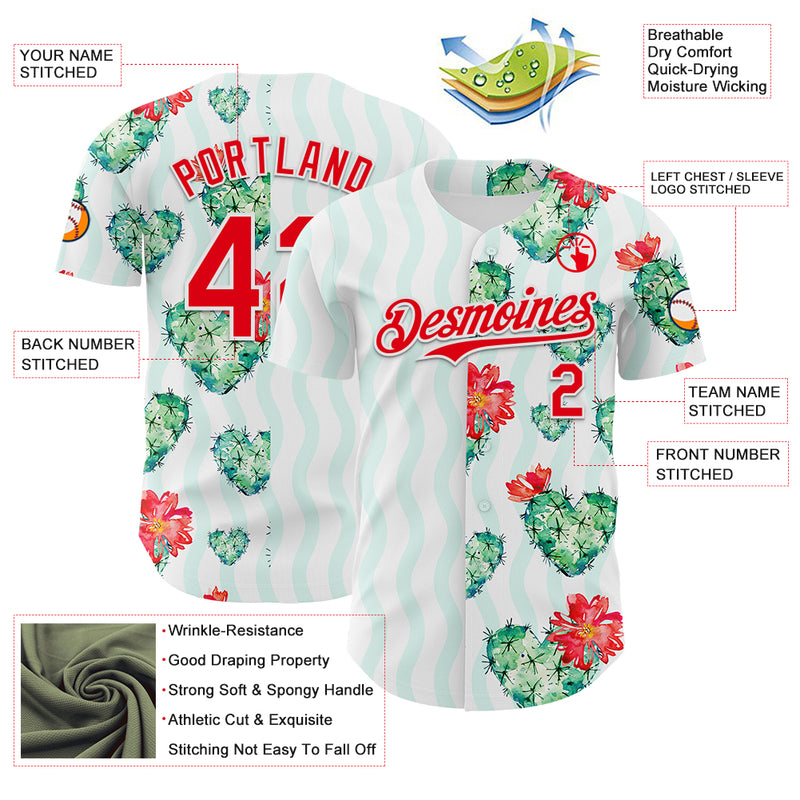 Custom White Fire Red-Green Valentine's Day Love Heart Authentic Baseball Jersey