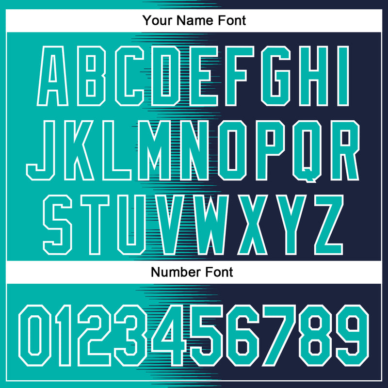 Custom Aqua Navy-White Gradient Line Bomber Full-Snap Varsity Letterman Hoodie Jacket