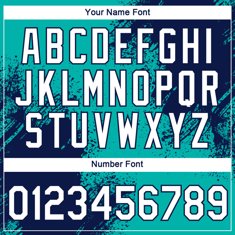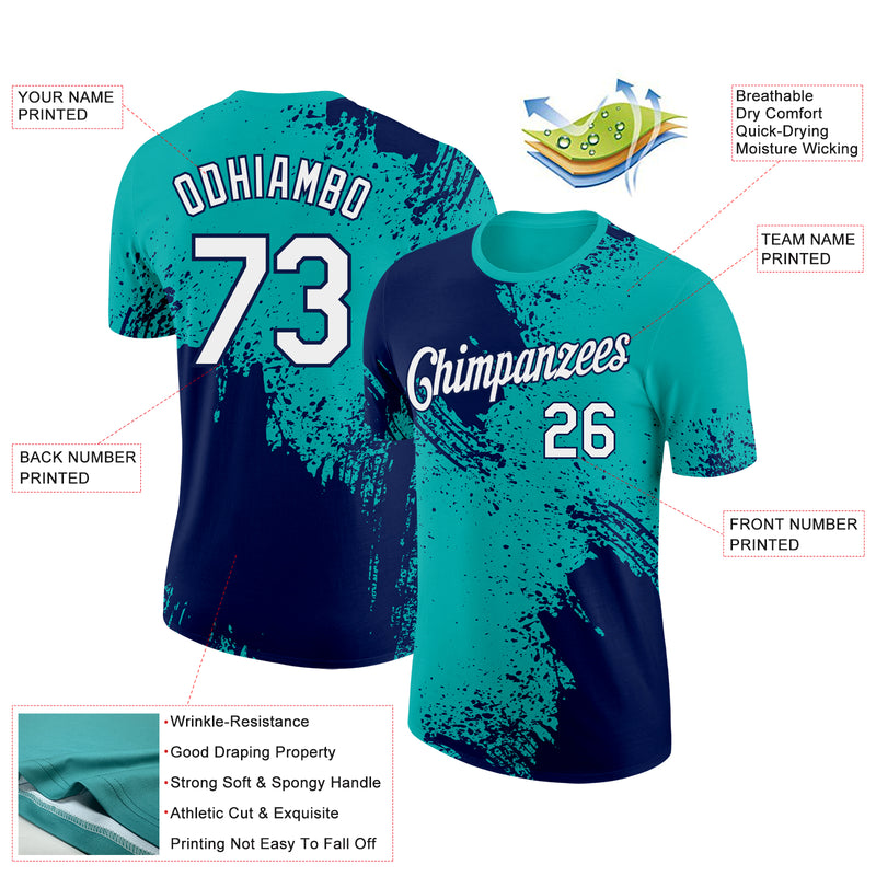 Custom Aqua White-Navy 3D Pattern Design Abstract Brush Stroke Performance T-Shirt