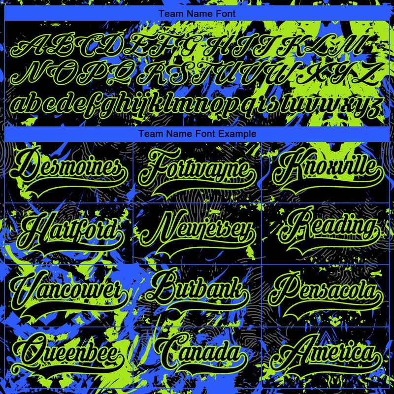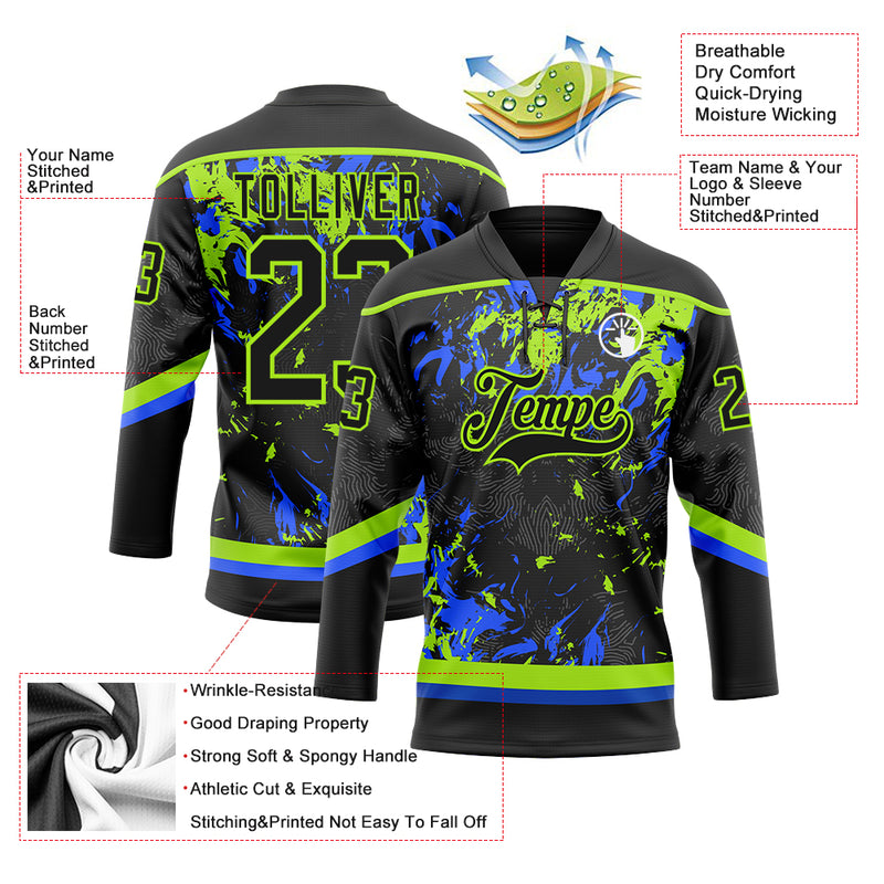 Custom Black Neon Green-Royal 3D Fluid Art Splash Hockey Lace Neck Jersey