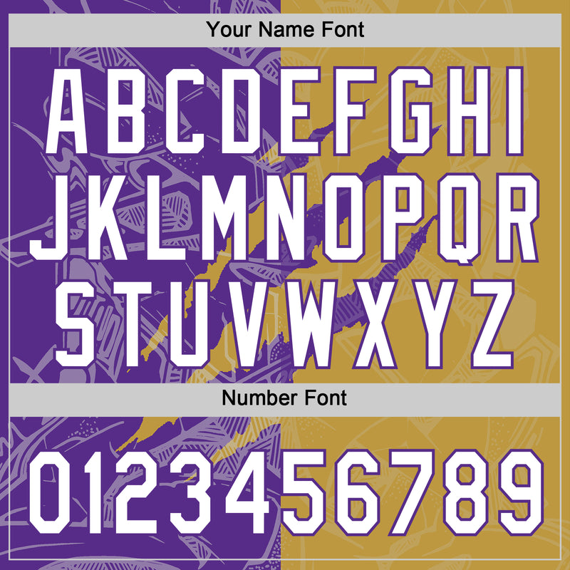 Custom Graffiti Pattern White Old Gold-Purple 3D Scratch Two-Button Unisex Softball Jersey